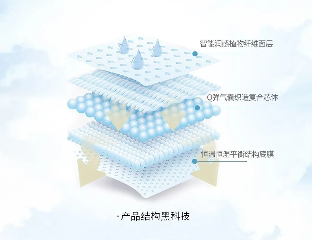 很爺衛(wèi)生巾的Q彈氣囊織造復合芯體,遇水膨脹,迅速形成導流通道和空氣對流循環(huán)通道,同時編織體中富含超能吸水因子,牢牢鎖住水分不外溢。編織結構扛扭動,坐壓不變形,突如其來的潮涌也不會帶來溢出尷尬。