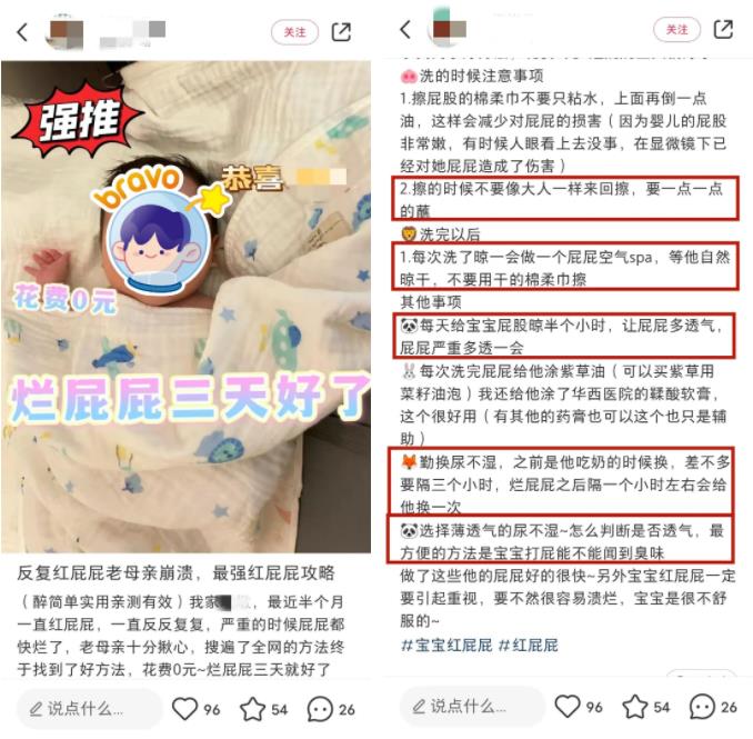 每到這個(gè)季節(jié),互聯(lián)網(wǎng)上就充斥著大量關(guān)于“紅屁屁”的咨詢和問答,有一些父母成功解決了寶寶的“紅屁屁”問題,也會(huì)將自己的經(jīng)驗(yàn)發(fā)布到網(wǎng)上,和大家進(jìn)行交流。