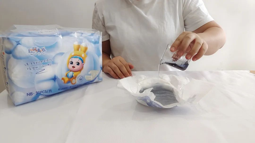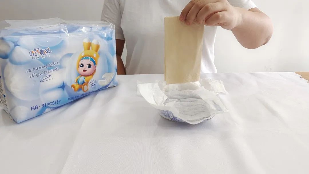 歐阿咦哦紙尿褲面層,在吸水后用紙巾覆蓋,能明顯感受到輕微的潤澤感,并不是完全干爽的。這是因?yàn)槲覀冊(cè)谥谱鬟^程中通過反復(fù)試驗(yàn),通過材料的變更,挑選出更接近寶寶皮膚角質(zhì)層的含水量的測(cè)試結(jié)果,從而選定材質(zhì)。