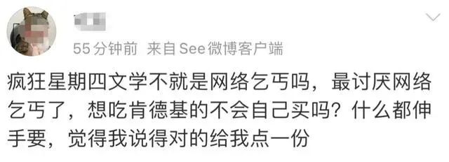 基于肯德基“瘋狂星期四”促銷活動(dòng)催生的“魔幻文學(xué)”,早已在互聯(lián)網(wǎng)傳播開(kāi)來(lái)。人們樂(lè)此不疲地“創(chuàng)造”出更多“瘋狂星期四文學(xué)”,在互聯(lián)網(wǎng)泛起一層又一層的漣漪。