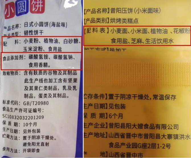 左邊的日式小圓餅,是我平時(shí)常備的貪嘴零食。作為預(yù)包裝產(chǎn)品,有一些食品添加劑也無可厚非;而右邊,則是【狐花花Mall】商城上由代理商提供的“昔陽壓餅”,配料表干凈清爽,就連成分中的“水”,也標(biāo)明是“生活飲用水”。