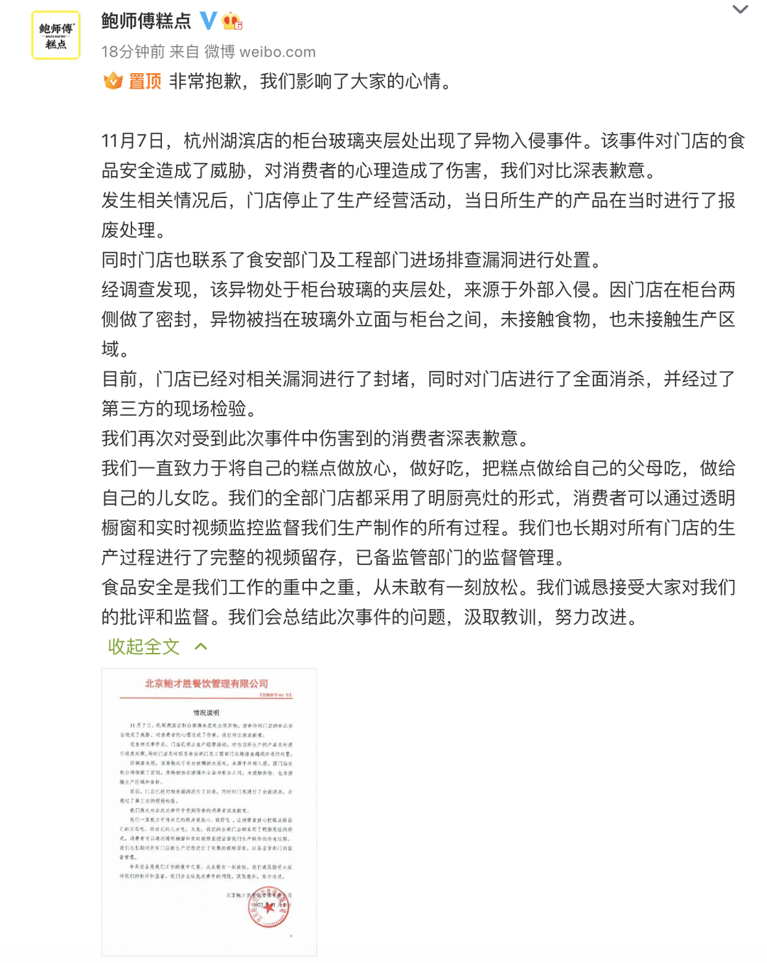 很快,現(xiàn)場(chǎng)視頻被拍攝下來,發(fā)到網(wǎng)上,迅速引起網(wǎng)友的圍觀。而在8日,鮑師傅官方也連發(fā)好幾則通告和微博,高度關(guān)注此事。